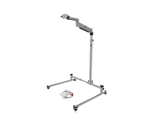 The Rehadapt Vario Float QP is an adjustable rolling floorstand with a free-floating articulated arm. It’s designed to securely mount your assistive technology device, place it by your side, and adjust the arm for correct positioning. Highly adjustable in both height and base width, the Vario Float enables a smooth passage through narrow doors and allows close placement to beds, recliners, sofas, and wheelchairs. The overhanging floating arm counterbalances the device’s weight, allowing it to float freely in any direction just by moving it lightly. This floorstand comes with a convenient rolling transportation bag and its quick pack (QP) functionality makes it easy to flatten the floorstand without tools to fit into the bag.