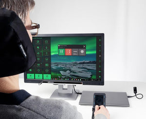 PCEye Plus is an advanced eye tracker designed for use with a Windows computer or laptop, for those with beginner or advanced eye gaze skills. Includes a microphone for dictation, a switch access USB port and a micro to full USB converter.